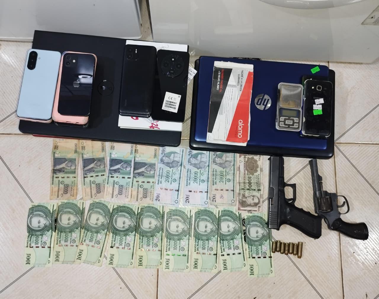 Durante los procedimientos, se incautaron numerosos elementos de interés investigativo, entre ellos aparatos DVR, documentos, dinero en efectivo, equipos informáticos, celulares, prendas de vestir y armas de fuego.