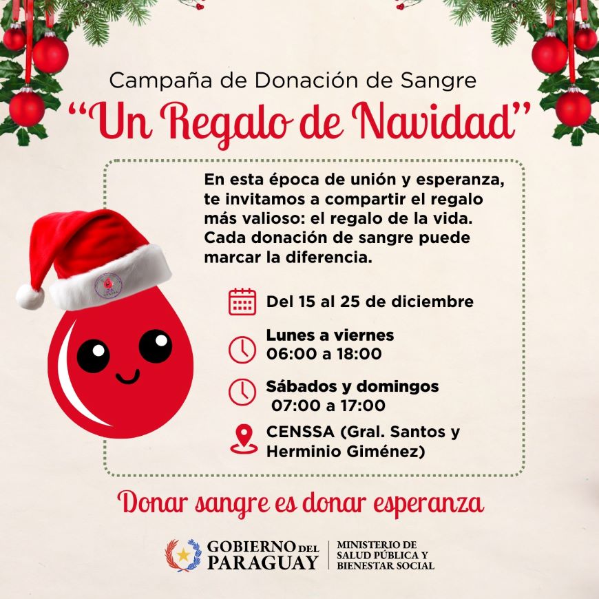 El Ministerio de Salud, a través del Centro Nacional de Servicios de Sangre (CENSSA), lanzó la campaña “Un regalo de Navidad”, una estrategia para instar a la población a donar sangre y salvar vidas durante estas festividades.