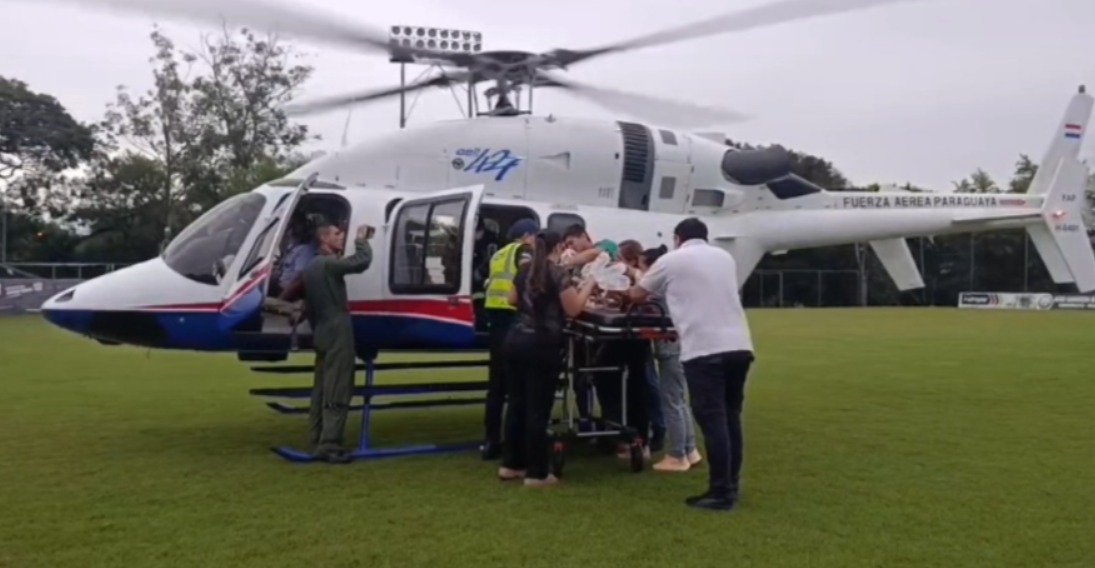 Trasladan vía aérea hasta Asunción a niña que cayó a una piscina en San Estanislao. Foto: Captura de video