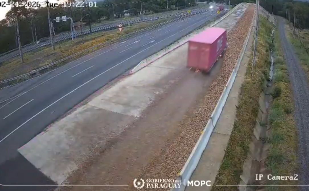 “Un camión de gran porte utilizó la rampa de emergencia de la Ruta PY02 tras sufrir fallas mecánicas, lo que permitió evitar un siniestro vial en Ypacaraí”, expresó el MOPC.