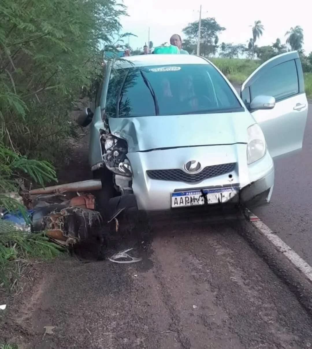 El percance rutero involucró a un automóvil de la marca Toyota, modelo New Vitz, que iba guiado por Daisy Suarez Giménez, de 19 años, quien aparentemente embistió de frente a la motocicleta.